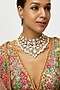 Featuring a gold finish necklace studded with kundan polki and pearl drops, set in brass. Perfect choice for weddings, parties, and for other Indian festivities.