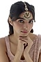 "Featuring a gold finish maangtikka studded with kundan polki, green onyx and pearls, set in brass. Perfect wear for festive occasions or wedding ceremonies.