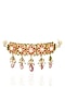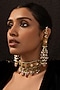 Featuring a gold finish choker necklace studded with kundan polki and pink tourmaline drops, set in alloy. It is paired with a matching pair of earrings. This jewellery creates a refined and graceful ensemble, ideal for weddings, festive gatherings or evening celebrations.