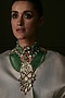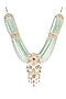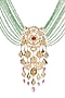 Featuring a gold finish long necklace studded with kundan polki and pink tourmaline drops, set in alloy. This jewellery creates a refined and graceful ensemble, ideal for weddings, festive gatherings or evening celebrations.