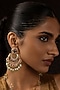 Featuring a pair of gold finish chandbali earrings studded with kundan polki, ruby, green onyx and pearls, set in alloy. This jewellery creates a refined and graceful ensemble, ideal for weddings, festive gatherings or evening celebrations.