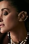 Featuring a pair of gold finish statement earrings studded with kundan polki and ruby, set in alloy. This jewellery creates a refined and graceful ensemble, ideal for weddings, festive gatherings or evening celebrations.