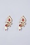 Featuring a gold finish side pendant necklace studded with kundan polki and rubies, set in mixed metal. It is paired with a matching pair of earrings.
