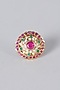 Featuring a gold finish ring studded with red and green jadau, set in alloy.
