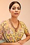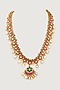 Featuring a gold finish long necklace studded with red and green kundan polki, set in brass. Perfect wear for festive occasions or wedding ceremonies.