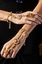Featuring a pair of gold finish hathphools studded with kundan polki and ruby, set in alloy. This jewellery creates a refined and graceful ensemble, ideal for weddings, festive gatherings or evening celebrations.