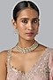 Featuring a gold finish necklace studded with white onyx, set in brass. It is paired with a matching pair of earrings. Add a touch of sparkle to your ensemble, perfect for wedding ceremonies or festive celebrations.