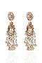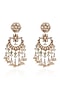 Featuring a pair of 24 kt gold plated chandbali earrings studded with green onyx and pearls, set in brass. Perfect for grand occasions like weddings and traditional festivities.