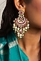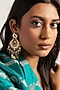 Featuring a pair of 24 kt gold plated chandbali earrings studded with green onyx and pearls, set in brass. It is paired with a matching pair of earrings. Perfect for grand occasions like weddings and traditional festivities.