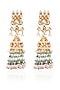 Featuring a pair of 24 kt gold plated jhumka earrings studded with green onyx and pearls, set in brass. Perfect for grand occasions like weddings and traditional festivities.