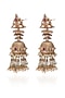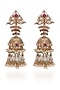 Featuring a pair of 24 kt gold plated jhumka earrings studded with green onyx and pearls, set in brass. Perfect for grand occasions like weddings and traditional festivities.