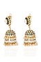 Featuring a pair of 24 kt gold plated jhumka earrings studded with green onyx and pearls, set in brass. It is paired with a matching pair of earrings. Perfect for grand occasions like weddings and traditional festivities.