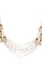 Featuring a 24 kt gold plated long necklace studded with green onyx and pearls, set in brass. It is paired with a matching pair of earrings. Perfect for grand occasions like weddings and traditional festivities.