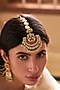 Featuring a 24kt gold plated maangtikka studded with green onyx and pearls, set in pure brass. Perfect for grand occasions like weddings and traditional festivities.
