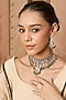 Featuring a 24 kt gold plated necklace studded with green onyx and pearls, set in brass. It is paired with a matching pair of earrings. Perfect for grand occasions like weddings and traditional festivities.