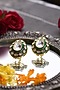 Featuring a pair of 24 kt gold plated stud earrings studded with green zircons, set in brass. It is paired with a matching pair of earrings. Perfect for grand occasions like weddings and traditional festivities.