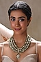 Featuring a 24 kt gold plated necklace studded with mint fluorite stones, set in brass. It is paired with a matching pair of earrings. Perfect for grand occasions like weddings and traditional festivities.
