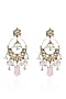 Featuring a pair of 24 kt gold plated chandbali earrings studded with pink rose quartz stones, set in brass. Perfect for grand occasions like weddings and traditional festivities.