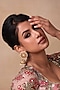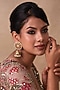 Featuring a pair of 24 kt gold plated jhumka earrings studded with pearls, red and green stones, set in brass. Perfect for grand occasions like weddings and traditional festivities.