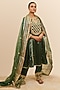 Basil Green Mashru Silk Gota & Sequins Hand Embroidered Anarkali Set