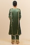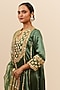 Featuring a basil green short anarkali in mashru silk base with gota, sequins and pearl hand embroidery. It is paired with salwar pants and an organza dupatta. Accentuate with dangler earrings and juttis for festive occasions.