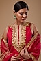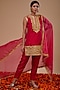 Featuring a fuchsia straight kurta in dupion and organza base with gota, sequin and motif work. It is paired with pants and a dupatta. Accentuate it with statement earrings and heels for a festive look.