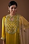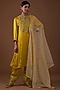 Featuring a golden saffron kurta in mashru silk base with gota, sequins, pearls and nakshi hand embroidery. It is paired with salwar pants and a beige organza dupatta. Perfect wear for a haldi or festive ceremony.