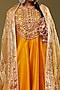 Featuring a mustard yellow anarkali in dupion base with gota embroidery. It paired with matching lycra pants and a yellow beige pure organza dupatta.