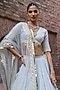 Featuring an ice blue lehenga in chanderi silk base with embroidery. It is paired with an embroidered blouse and an embroidered tulle dupatta. Accentuate with statement jewellery and heels for a wedding, sangeet or engagement ceremony.