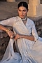 Featuring an ice blue angrakha anarkali in cotton mulmul base with diamond, thread and mirror work. It is paired with a tulle and soft net dupatta. Accentuate it with statement jewellery and heels for a festive occasion or sangeet ceremony.