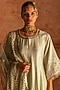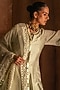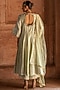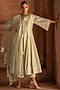 Featuring a mint anarkali in chanderi silk base with thread and sequins work. It is paired with pants and a tulle dupatta. Style it with dangler earrings and heels for a festive occasion, family gathering and mehendi ceremony.
