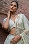Featuring a mint green lehenga in chanderi silk base with embroidery. It is paired with an embroidered blouse and an embroidered tulle dupatta. Accentuate with statement jewellery and heels for a wedding, sangeet or engagement ceremony.