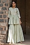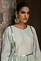 Featuring a mint green kurta in chanderi silk base with embroidery. It is paired with embroidered sharara pants and a tulle dupatta. Accentuate it with statement earrings and heels for any festive occasion.