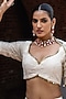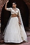 Featuring an off-white lehenga in chanderi silk base with embroidery. It is paired with an embroidered blouse and an embroidered tulle dupatta. Accentuate with statement jewellery and heels for a wedding, sangeet or engagement ceremony.