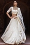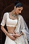 Featuring an off-white lehenga in chanderi silk base with embroidery. It is paired with an embroidered blouse and an embroidered tulle dupatta. Accentuate with statement jewellery and heels for a wedding, sangeet or engagement ceremony.