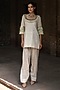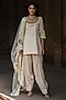 Featuring an off-white kurta in cotton sheer mulmul base with embroidery. It is paired with farshi salwar pants and a tulle dupatta. Accentuate it with statement earrings and heels for any festive occasion.