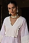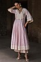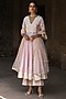 Featuring an onion pink anarkali in chanderi silk base with thread and sequins work. It is paired with pants and a tulle dupatta. Style it with dangler earrings and heels for a festive occasion, family gathering and cultural events.