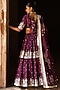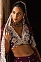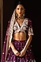 Featuring a wine lehenga in chanderi silk base with embroidery. It is paired with an embroidered blouse and an embroidered tulle dupatta. Accentuate with statement jewellery and heels for a wedding, sangeet or engagement ceremony.