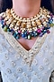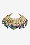 Featuring a 24kt gold plated necklace studded with kundan polki and precious carved beads, set in brass.