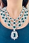 Featuring a 24kt white rhodium plated necklace studded with green zircons, set in brass.