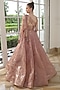 Peach Tissue Organza Hand Embroidered Gown With Cape