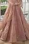 Featuring a peach gown in tissue organza base with 3D crystal hand embroidery and sequins work. It is paired with an embroidered draped cape and a can-can. Accentuate it with dangler earrings and heels for engagement or wedding ceremonies.