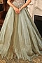 Featuring a sage green pleated gown in silk organza base with 3D glass embroidery. It is paired with a can-can. Accentuate it with dangler earrings and heels for a bridesmaid look.