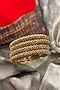 Featuring a set of four antique gold finish temple bangles with beadwork and scalloped carvings, set in mixed metal. Add a touch of sparkle to your ensemble, perfect for festive occasions, weddings or sangeet ceremony.