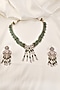 Featuring an antique gold finish choker necklace studded with kundan polki, emeralds and zircons, set in brass. It is paired with a matching pair of earrings. Add a touch of sparkle to your ensemble, perfect for wedding ceremonies or festive celebrations.