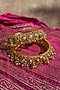 Featuring a pair of antique gold finish temple bangles with hand carved details, set in mixed metal. Add a touch of sparkle to your ensemble, perfect for festive occasions, weddings or sangeet ceremony.