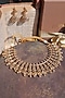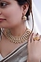 Featuring an antique gold finish temple necklace with medallion motifs and gold bead fringes, set in mixed metal. It is paired with a matching pair of earrings. Add a touch of sparkle to your ensemble, perfect for festive occasions, weddings or sangeet ceremony.