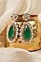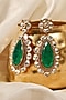Featuring a pair of gold finish dangler earrings studded with uncut kundan polki and green panna stone, set in mixed metal. It has a push-back closure. This jewellery elevates weddings, parties and festive looks, style it with embellished outfits and heels for a refined, glamorous finish.
