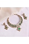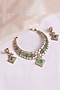 Featuring a gold finish choker necklace studded with green stones, kundan polki and zircons, including an adjustable thread closure, set in mixed metal. It is paired with a matching pair of earrings having a push-back closure. This jewellery elevates weddings, parties and festive looks, style it with embellished outfits and heels for a refined, glamorous finish.