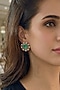 Featuring a pair of gold finish stud earrings studded with cubic zirconia, kundan polki and green synthetic stones, set in mixed metal. It has a push back closure. Ideal for festive occasions, weddings, or elevating your elegant evening look.